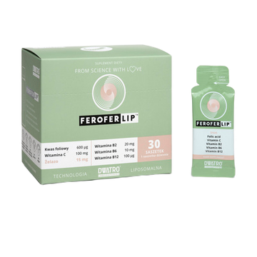 Wysokoprzyswajalne żelazo z kwasem foliowym, witaminą C oraz witaminami B2, B6 oraz B12 w postaci doustnego żelu liposomalnego.
